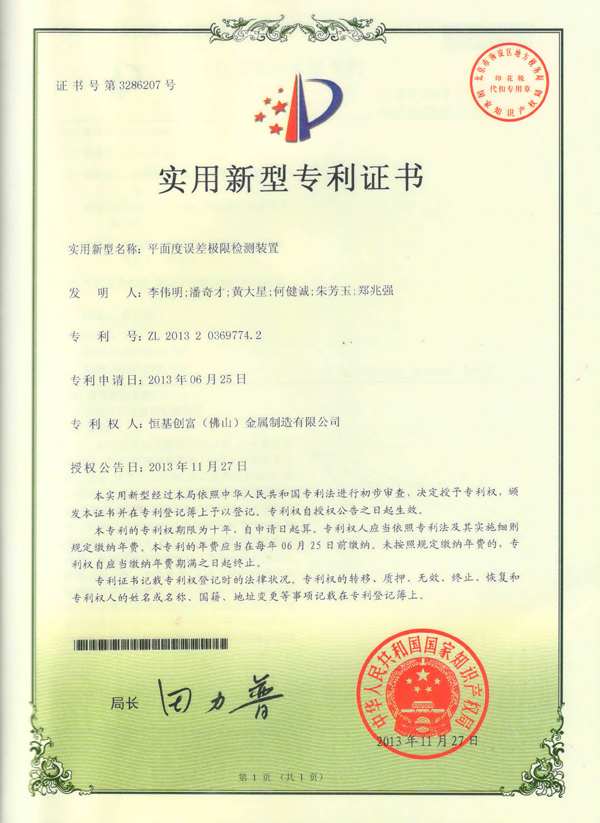 实用新型专利证书